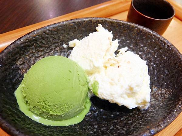 黑蜜抹茶嶺岡豆腐不包含在整個套餐中,但這是一道很值得品嚐的甜點。嶺岡豆腐不是真的「豆腐」,而是以牛乳混合芝麻、葛粉製作成的,沒有豆香,口感卻更細密,配上抹茶冰淇淋和香氣四溢的沖繩黑糖蜜,濃濃乳香、焦香和抹茶甘苦的味道結合一氣,層次非常豐富,好好吃!